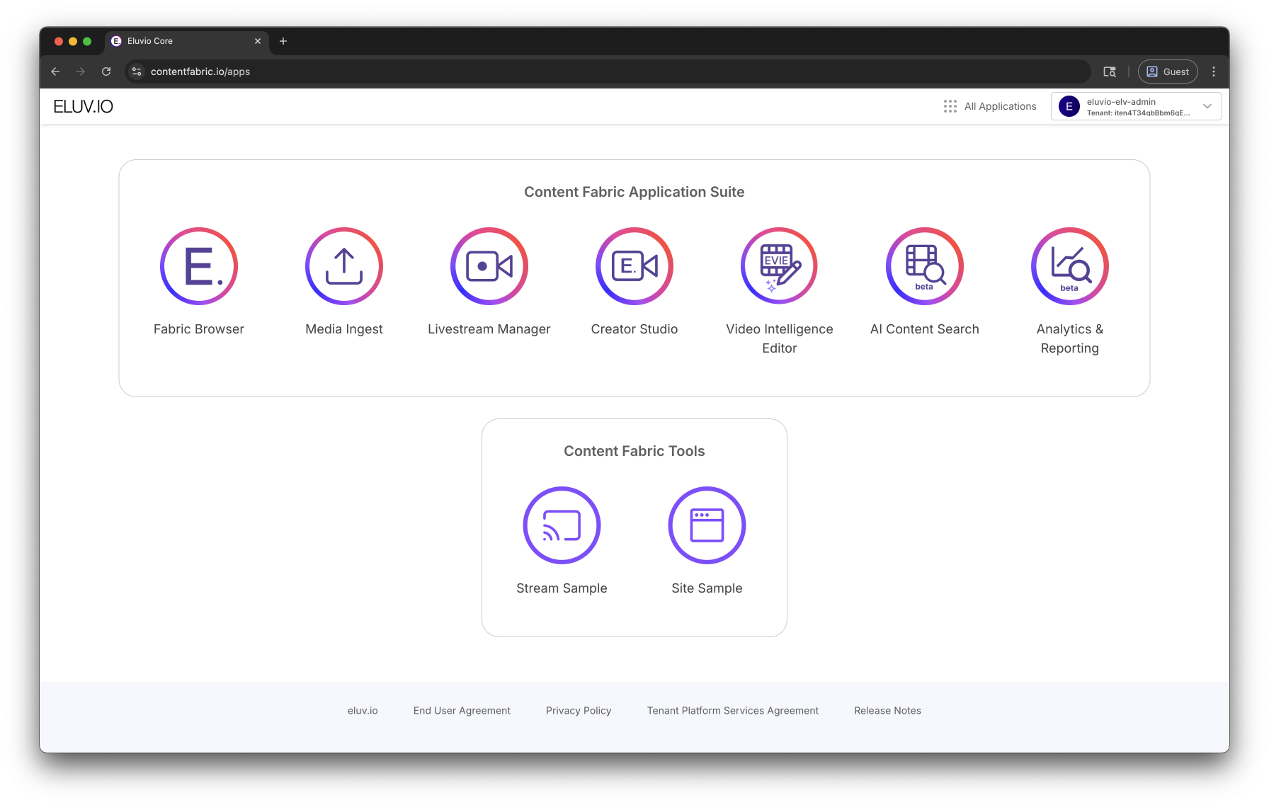 - Navigate to the Eluvio Core Apps page using the following address https://contentfabric.io/apps