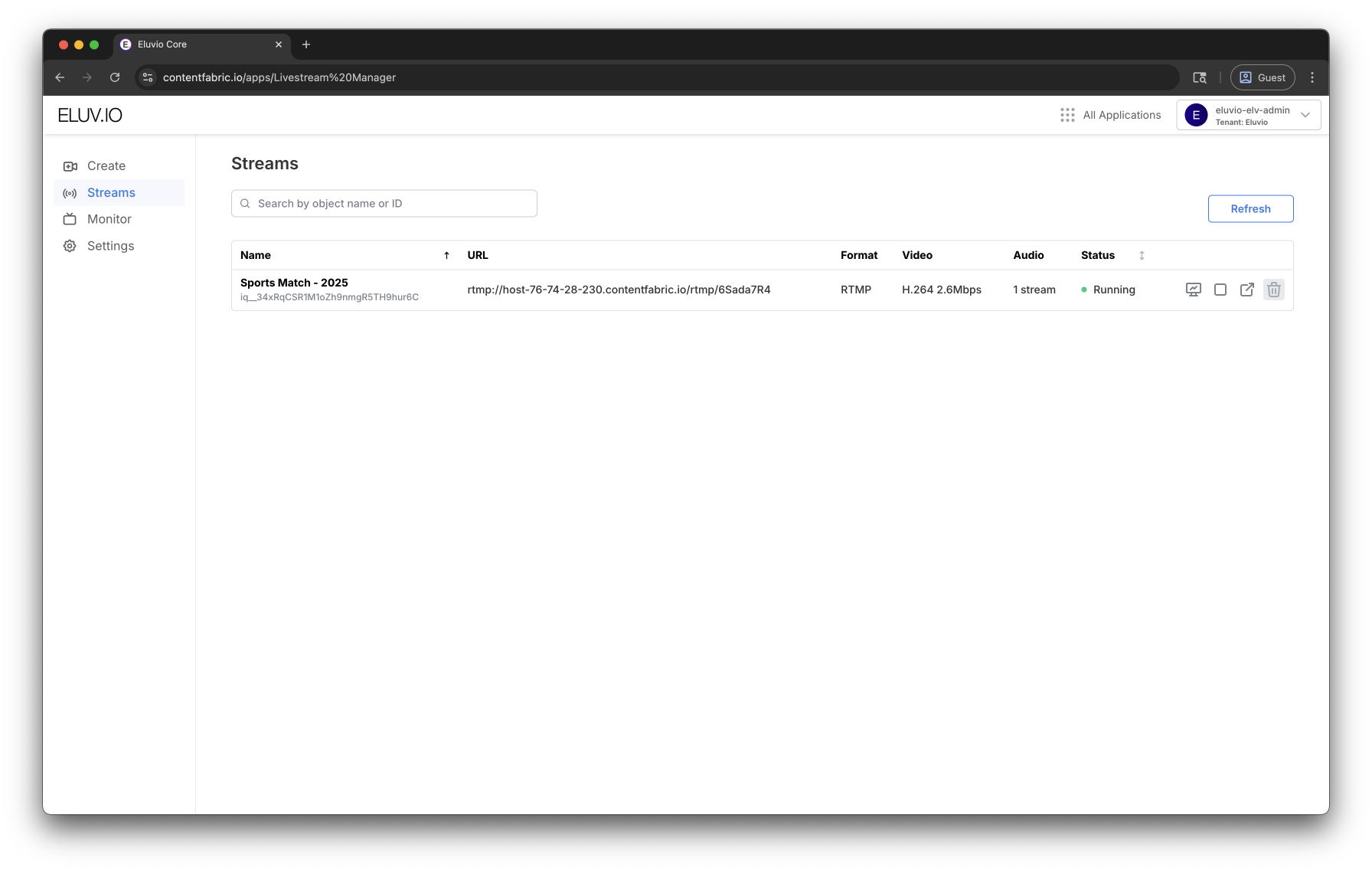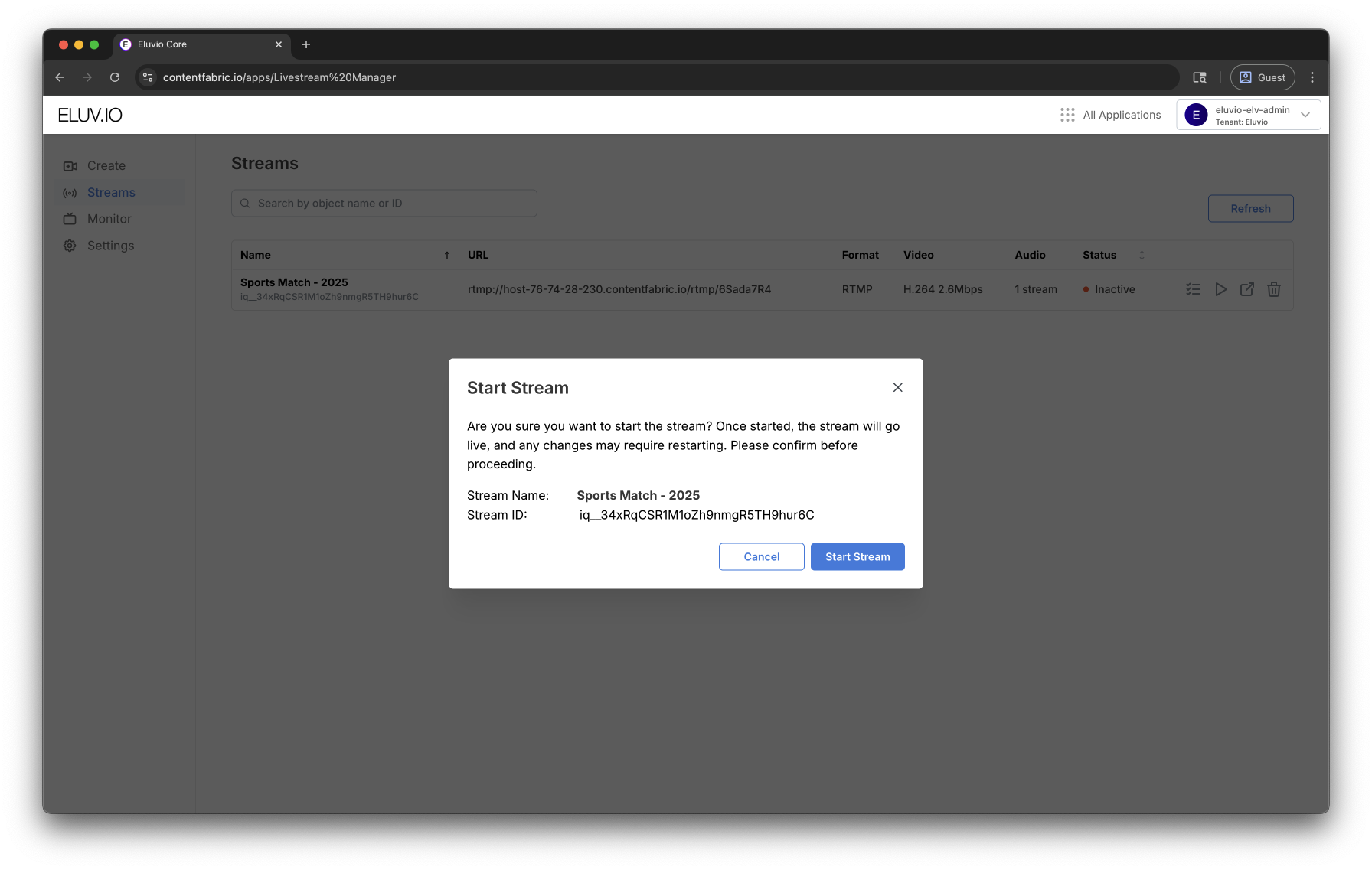 This section covers instructions on creating a live stream using the Eluvio Livestream Manager.