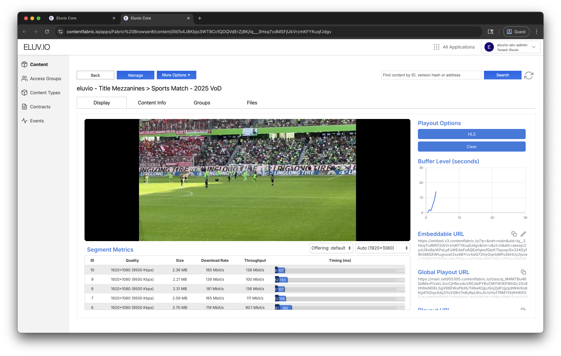 - The VOD object can be previewed on the Fabric Browser by clicking on the arrow icon.