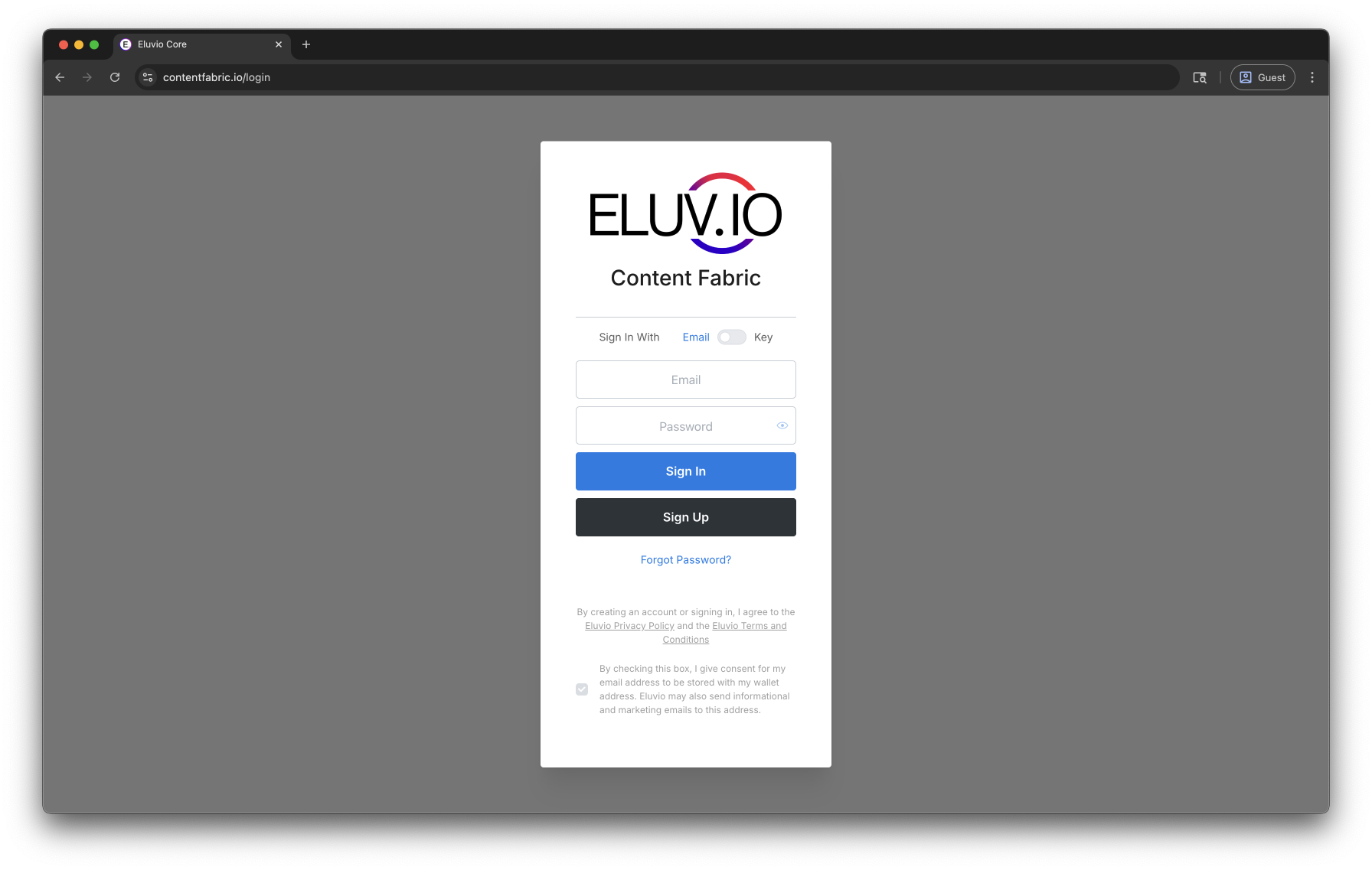 The Content Fabric is currently in ’limited availability’ and provides one default Content Space. To create and fund a Tenant, please submit a request to the Eluvio team at https://eluv.io/register.